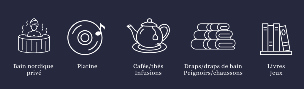 Afin que votre séjour soit le plus agréable possible, nous proposons différents services repas & boissons ainsi que des massages sur-mesure. Vous n’aurez qu’une chose à faire : profiter…